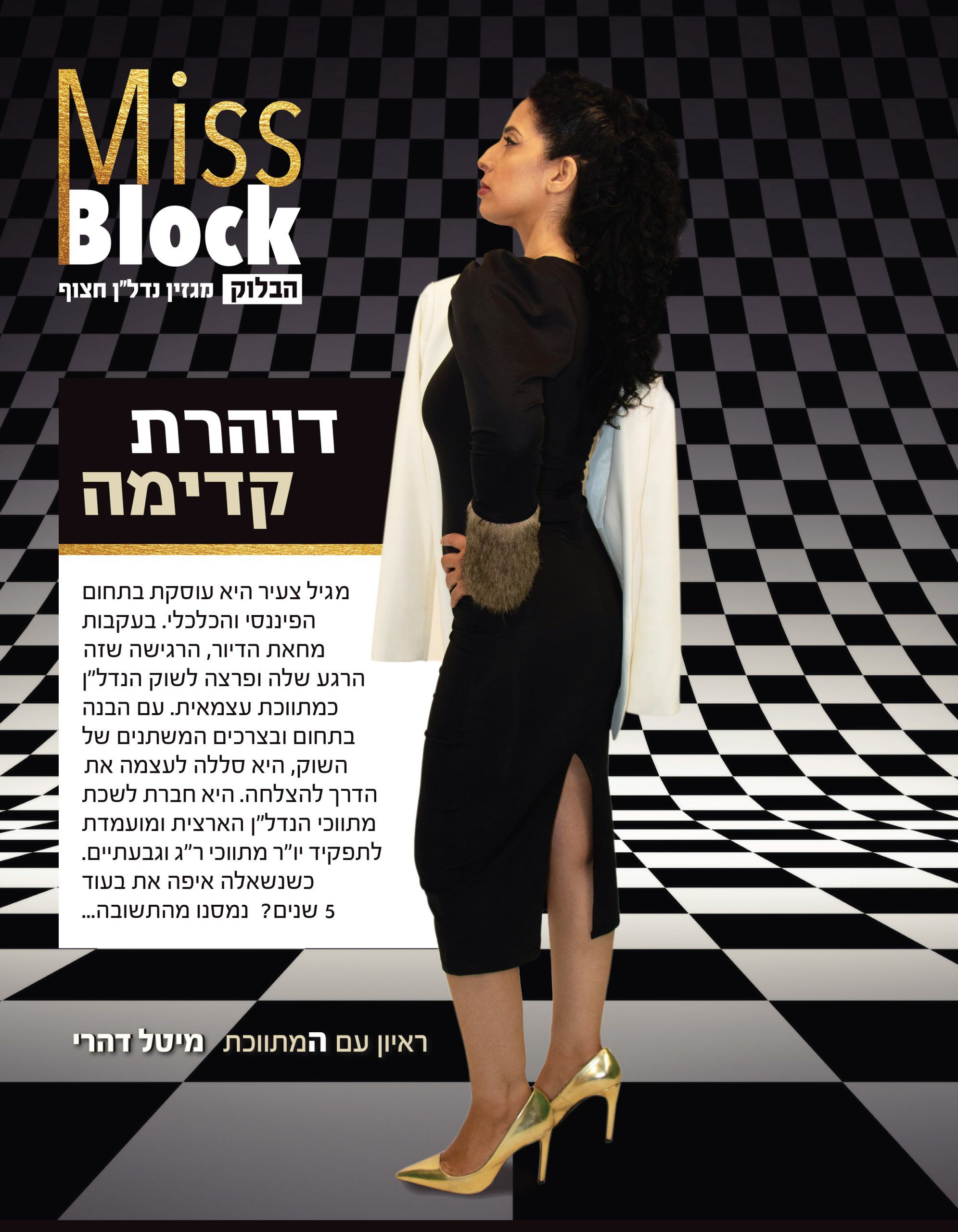 מגיל צעיר היא עוסקת בתחום הפיננסי והכלכלי. בעקבות מחאת הדיור, הרגישה שזה הרגע שלה ופרצה לשוק הנדל"ן כמתווכת עצמאית. עם הבנה בתחום ובצרכים המשתנים של השוק, היא סללה לעצמה את הדרך להצלחה. היא חברת לשכת מתווכי הנדל"ן הארצית ומועמדת לתפקיד יו"ר מתווכי ר"ג וגבעתיים. כנשאלה איפה את בעוד 5 שנים? נמסנו מהתשובה…