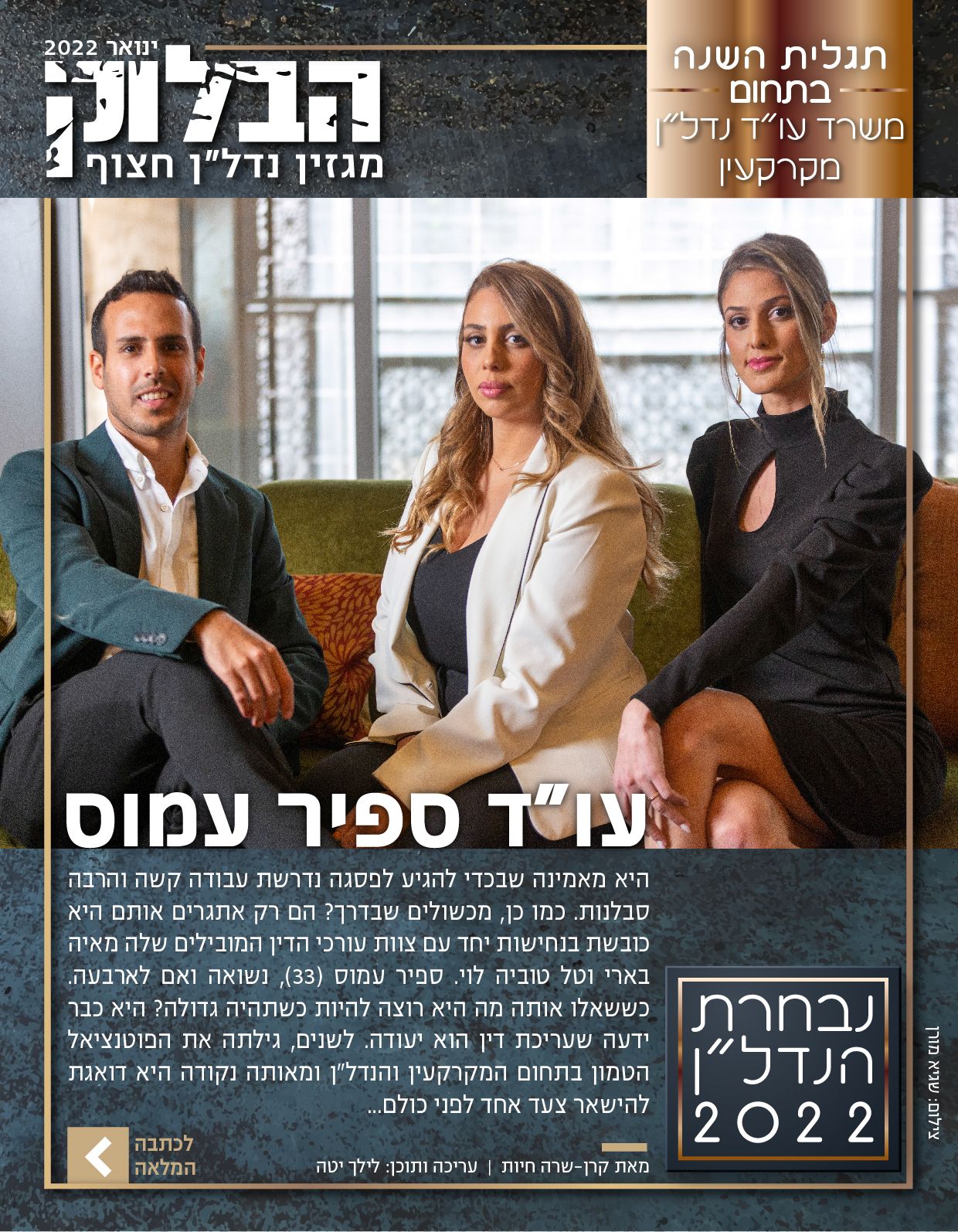 ספיר עמוס, בת 33, נשואה ואם לארבעה. כששאלו אתה מה רוצה להיות כשתהיה גדולה? היא כבר ידעה שעריכת דין הוא יעודה. לשנים, גילתה את הפוטנציאל הטמון בהתמחותה בתחום המקרקעין והנדל"ן ומאותה נקודה דואגת להישאר צעד אחד לפני כולם…