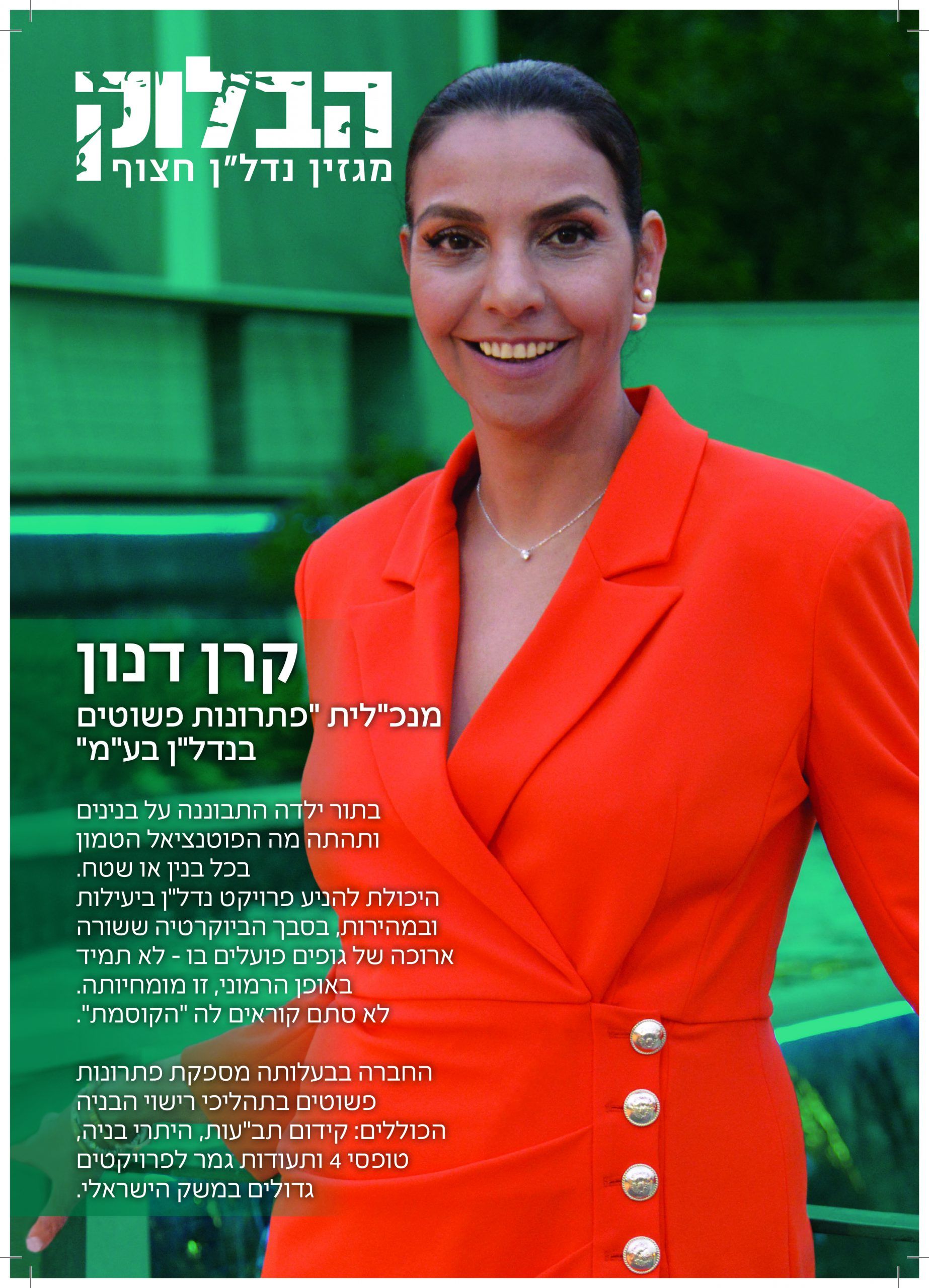 היא לקחת על עצמה את התפקיד המאתגר בישראל, בירוקרטיה והפכה את האתגר לפתרונות פשוטים, בנדל"ן.