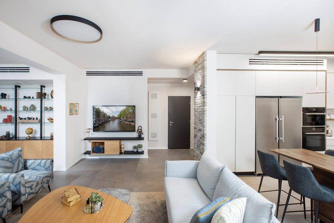 "בני הזוג מרבים לארח לכן חשוב היה להם לייצר מרחב מזמין בקווים נקיים, בו משולבים אלמנטים ופריטים מעץ שמקנים חמימות. חשוב היה להם גם יצירת כמה שיותר מקומות אחסון ואכן הקדשנו מחשבה על יצירת פתרונות לכך בכל אחד מהחללים".