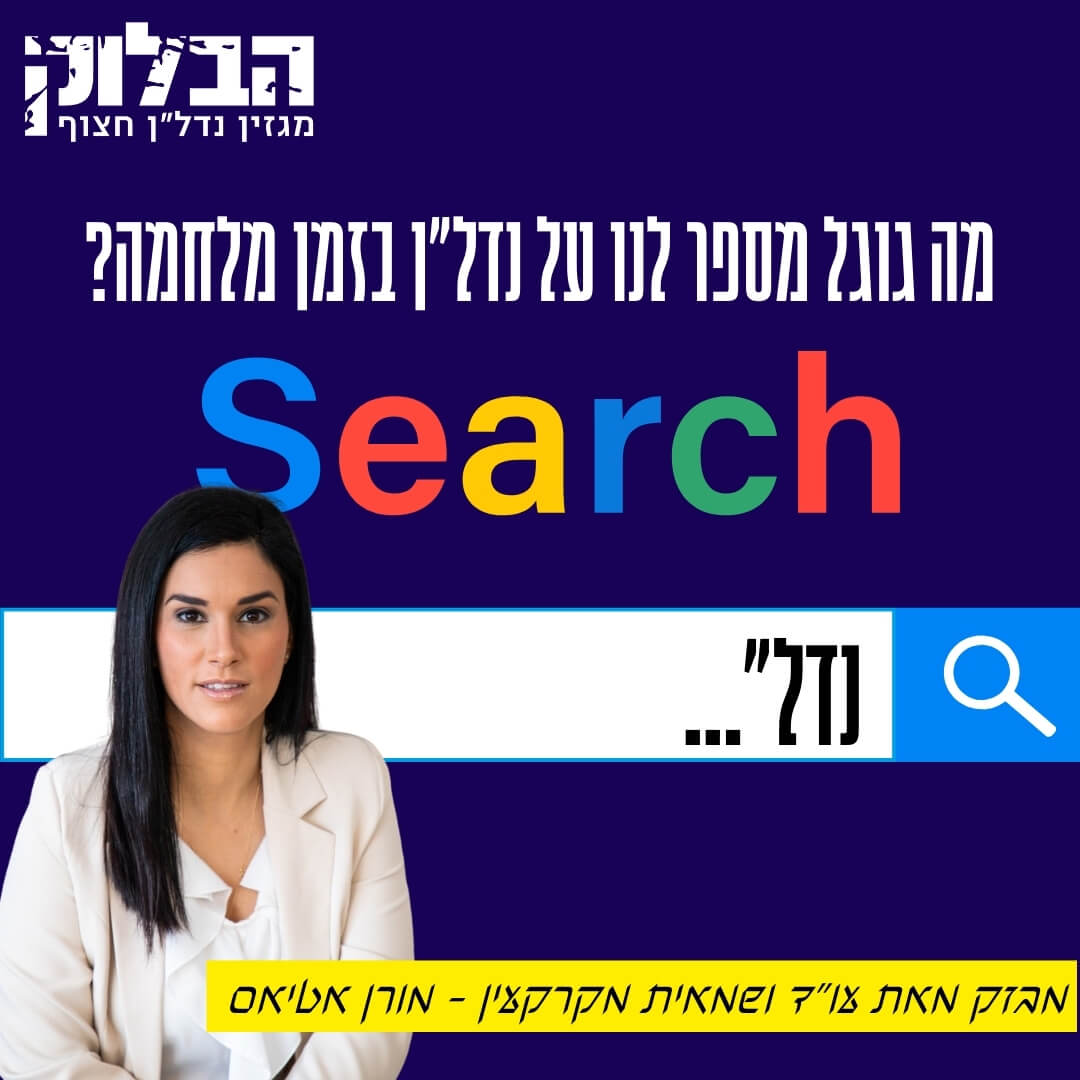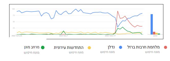 "בחודש אוקטובר, עם פרוץ מלחמת "חרבות ברזל" ניתן לראות ירידה דרסטית בחיפושי המושג "נדל"ן" בקורולוציה מושלמת עם העליה הדרסטית בחיפוש המושג "מלחמת חרבות ברזל" ועלייה יחסית בחיפוש המושג "מרחב מוגן."