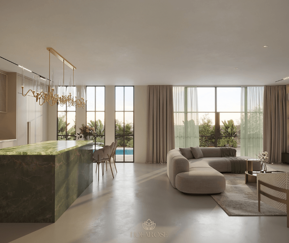 עיצוב פנים מודרני של בתי יוקרה שם דגש על יצירת מרחבים פתוחים ורחבים, המאפשרים זרימה חלקה בין חללי המגורים. המטבח, הסלון, וחללי האוכל הופכים לחללים מרכזיים המחוברים זה לזה, עם קירות זכוכית גדולים שמכניסים את האור הטבעי פנימה ומשלבים את הסביבה החיצונית עם הפנים. חללים פתוחים אלו משדרים יוקרה ונוחות, ומאפשרים לדיירים לנצל את החלל באופן מיטבי.