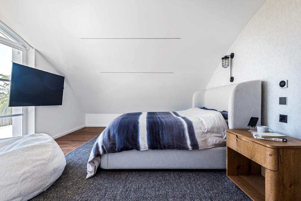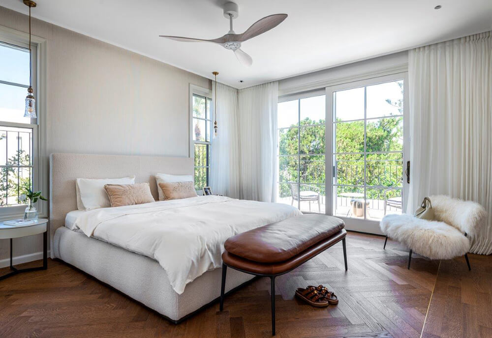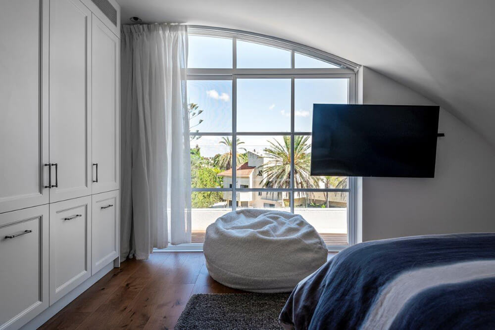 קומת המגורים מחולקת לשני אגפים – מצד ימין סוויטת ההורים, ומצד שמאל אגף הילדים. סוויטת ההורים עוצבה כסוויטה יוקרתית, עם צבעוניות בהירה ומרגיעה, טפטים בעלי טקסטורה, מנורות תלויות, ווילונות נשפכים, ופרקט פישבון המגולף כמרכיב מסגרת סביב המיטה. בנוסף, קיימת יציאה למרפסת אינטימית.