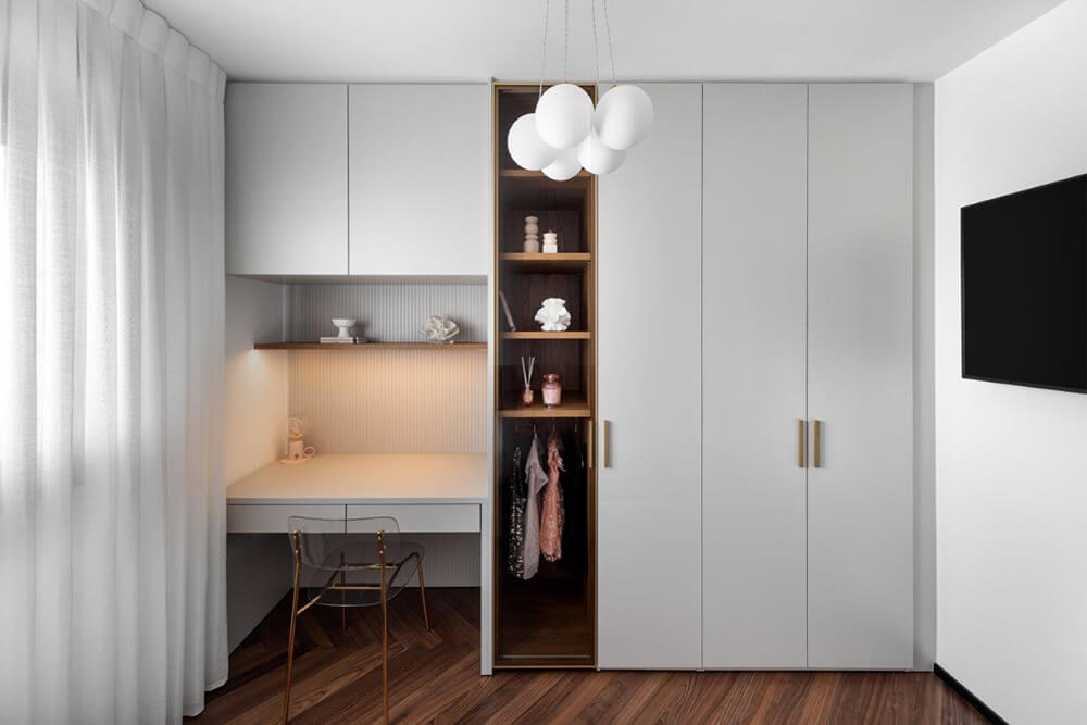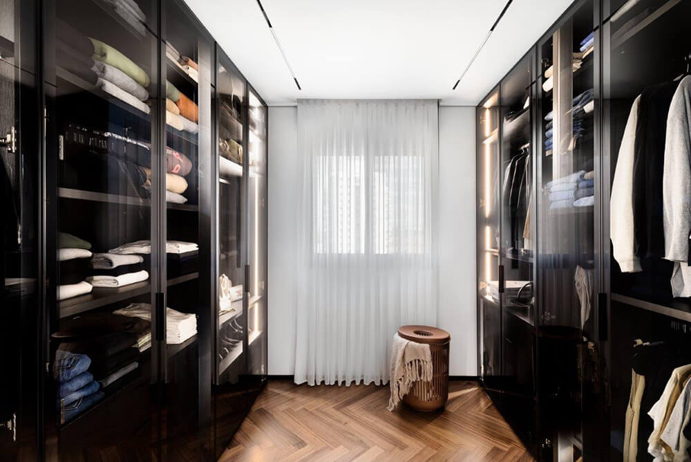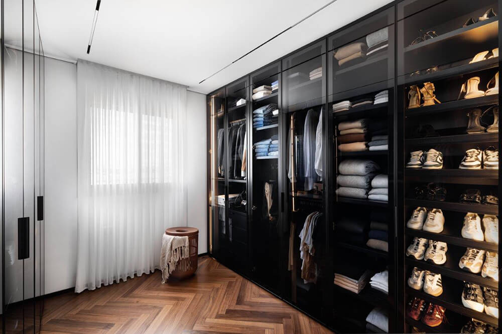 עם קבלת המפתח של הדירה החלו במרץ עבודות השיפוץ בבית. אחת ההחלטות המרכזיות הייתה לשבור קיר בין חדר השינה לבין אחד החדרים הצמודים, במטרה ליצור חדר ארונות מפנק, שתוכנן בשיתוף עם חברת דלקוב. מתוך מטרה להוסיף תחושת מרחב בחדר השינה. בחדר הארונות המפנק שולבה תאורת לד פנימית שיוצרת אווירה רומנטית ורגועה בחדר השינה במיוחד בשעות הערב.