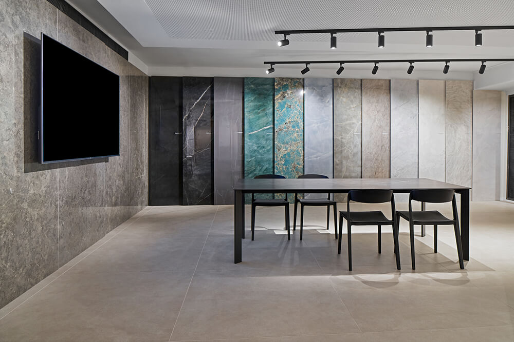 האולם בנוי מחללים שונים, המספקים השראה למעצבים, אדריכלים ולקוחות פרטיים. בין החללים ניתן למצוא אזורים המדגימים שימושים שונים באריחים, אזורים טכניים שממחישים את היכולות החדשניות של המוצרים, וכן "אזור עבודה" ייחודי הכולל אריחים פרי-סטייל הניתנים להזזה. בנוסף, קיים אזור התכנסות המיועד לכנסים, ישיבות מקצועיות ומפגשים עם לקוחות.