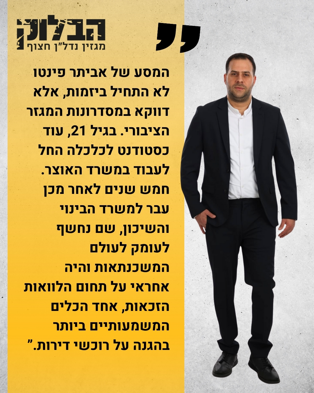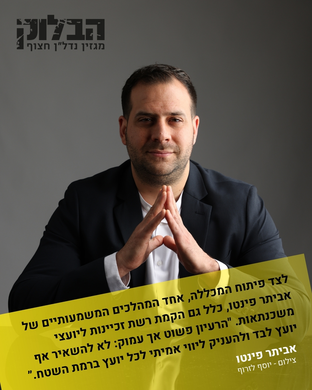 בעולם שבו רוב האנשים פוגשים משכנתה פעם או פעמיים בחיים, יש מי שחי ונושם אותה ביומיום, ורואה בה הרבה יותר ממספרים, ריביות וטבלאות אקסל. עבור אביתר פינטו, המייסד והמנכ"ל של החממה ליועץ, המשכנתה היא שליחות. כזו שמשלבת ידע עמוק, אחריות חברתית, ומנטורינג לדור הבא של יועצי המשכנתאות בישראל.