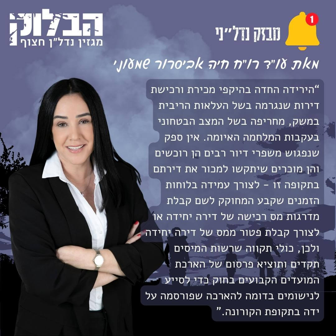 עו"ד דנה חביב- אופק, יו"ר מועדון הדיור הישראלי, מנטורית עסקית וכלכלית